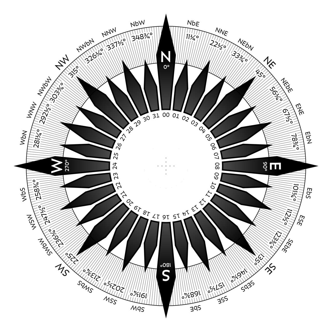 In fact, you can see all the points of the compass divided into 32 textual directions: